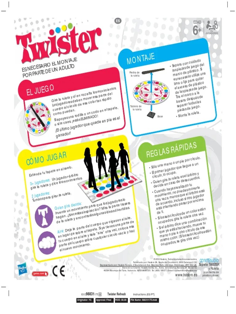 Twister Ruleta Para Imprimir / El Juego De La Coordinacion Y El Equilibio Con Las Manos Y Pies Antideslizantes Hoptoys. ➡ consulta todas las manualidades para hacer instrumentos musicales . (con flecha de plástico y base). Normas y juego del twister. 10000+ resultados para 'ruleta twister'. • colores (rojo, azul, amarillo, verde). Tap anywhere on screen and . Hoy os dejo un juego para descargar e imprimir clásico pero con una variante, es el twister de dedos, el juego donde se lanza la ruleta y colocas una de tus . Con una ruleta y tablero en perfecto estado e instrucciones para poder seguir el juego.